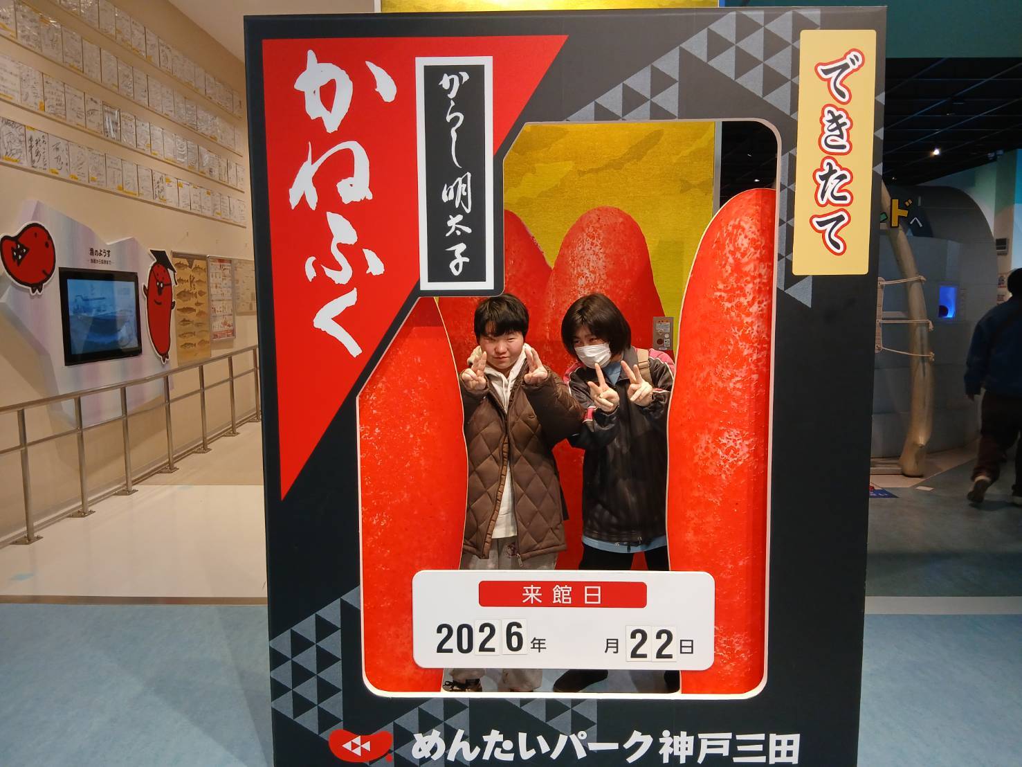 「めんたいパーク神戸三田」ではできたて明太子の料理を食べたり、お土産に明太子などたくさん買い物をされていました。